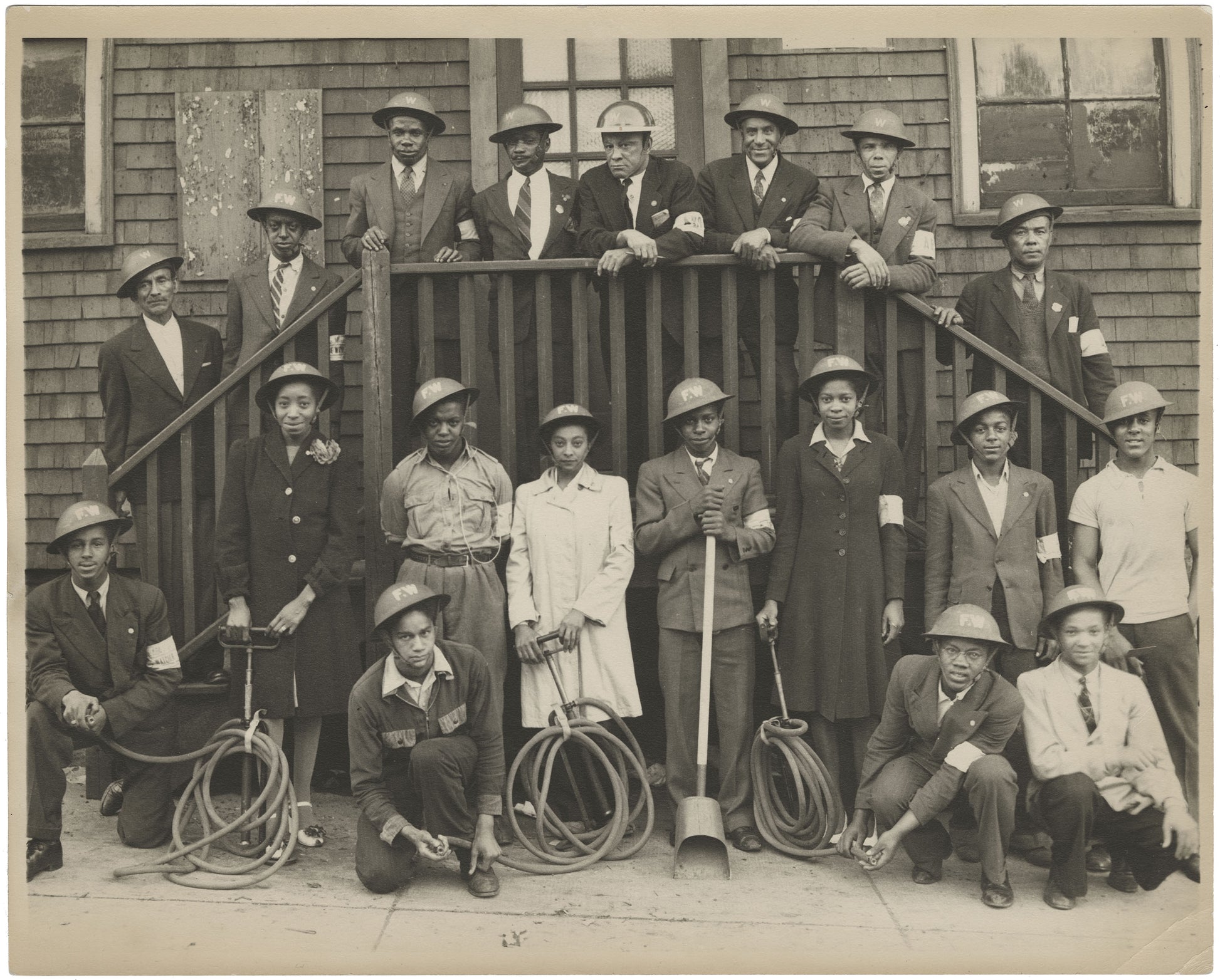 Fire Watchers [and wardens?], Section E2 of Platoon #7, A.R.P. in Halifax North between Gerrish and Cunard Streets, July 8, 1943