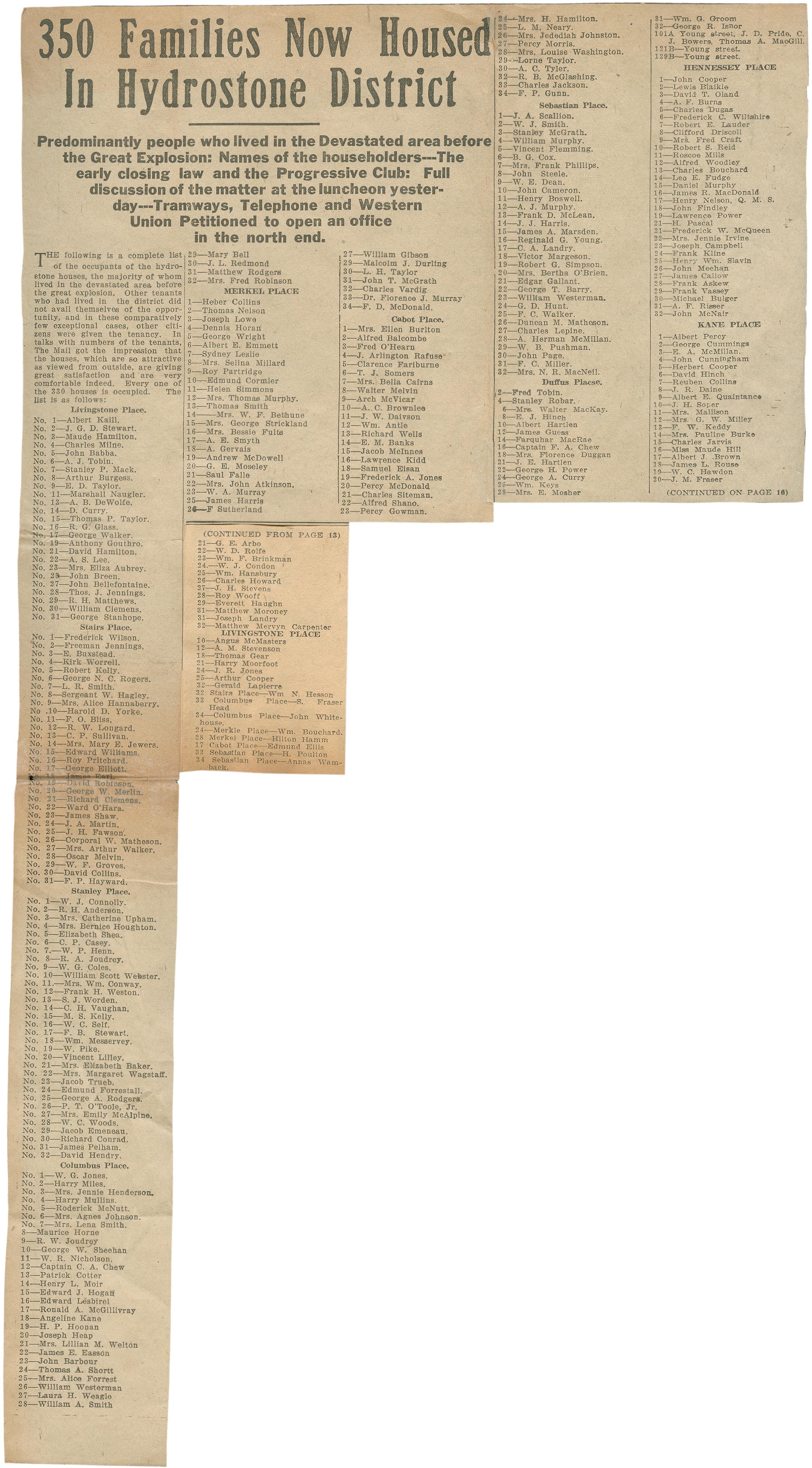 350 Families now Housed in Hydrostone district
