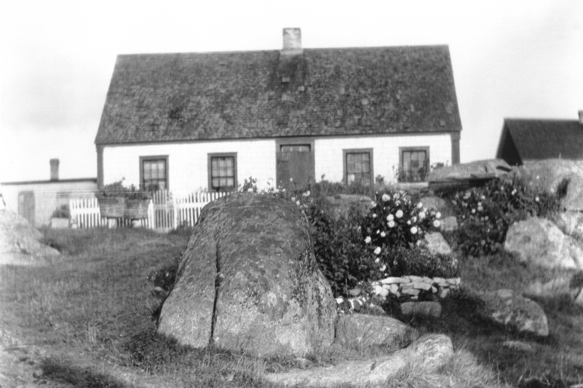 Cottage with picket fence and rock garden, Peggy's Cove