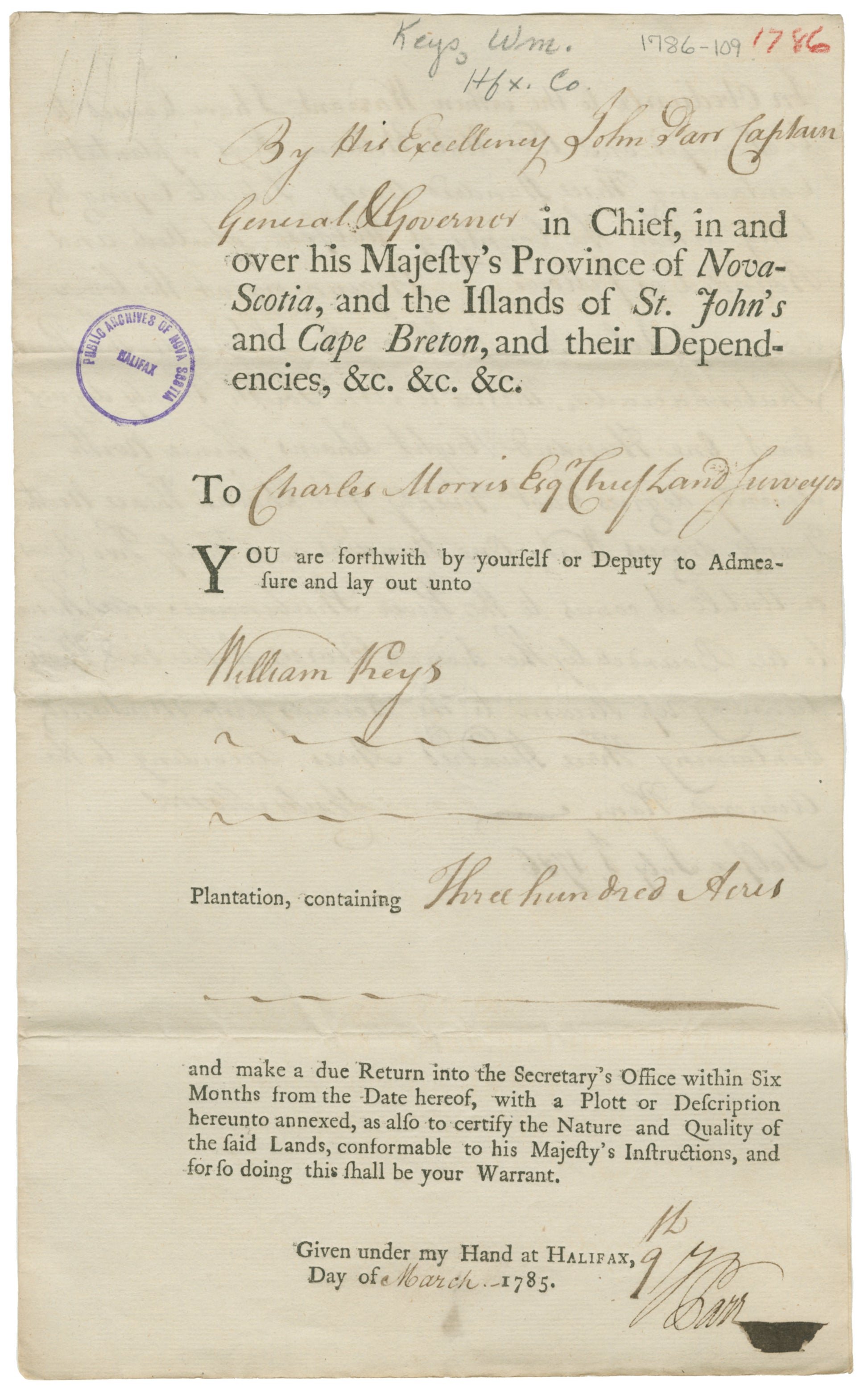 Digital copies of archival materials held by the Nova Scotia Archives are provided to you for limited, non-exclusive, non-transferable use, for the purposes of research or private study.