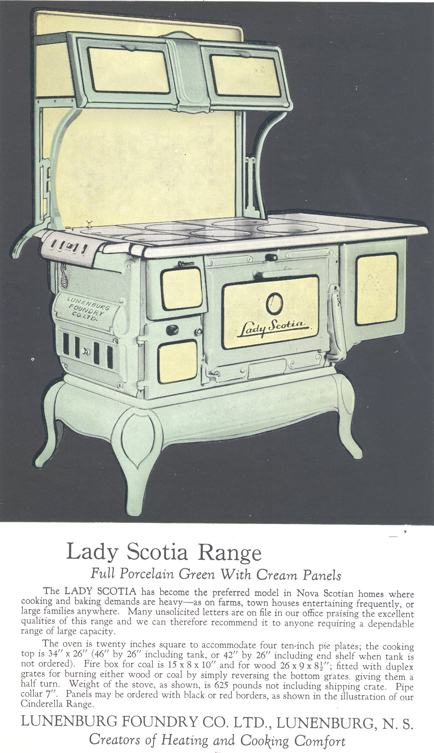 Taken from brochure Lunenburg Porcelain Ranges Cast Iron Cook Stoves... Lunenburg Foundry Co. Ltd, 1941.