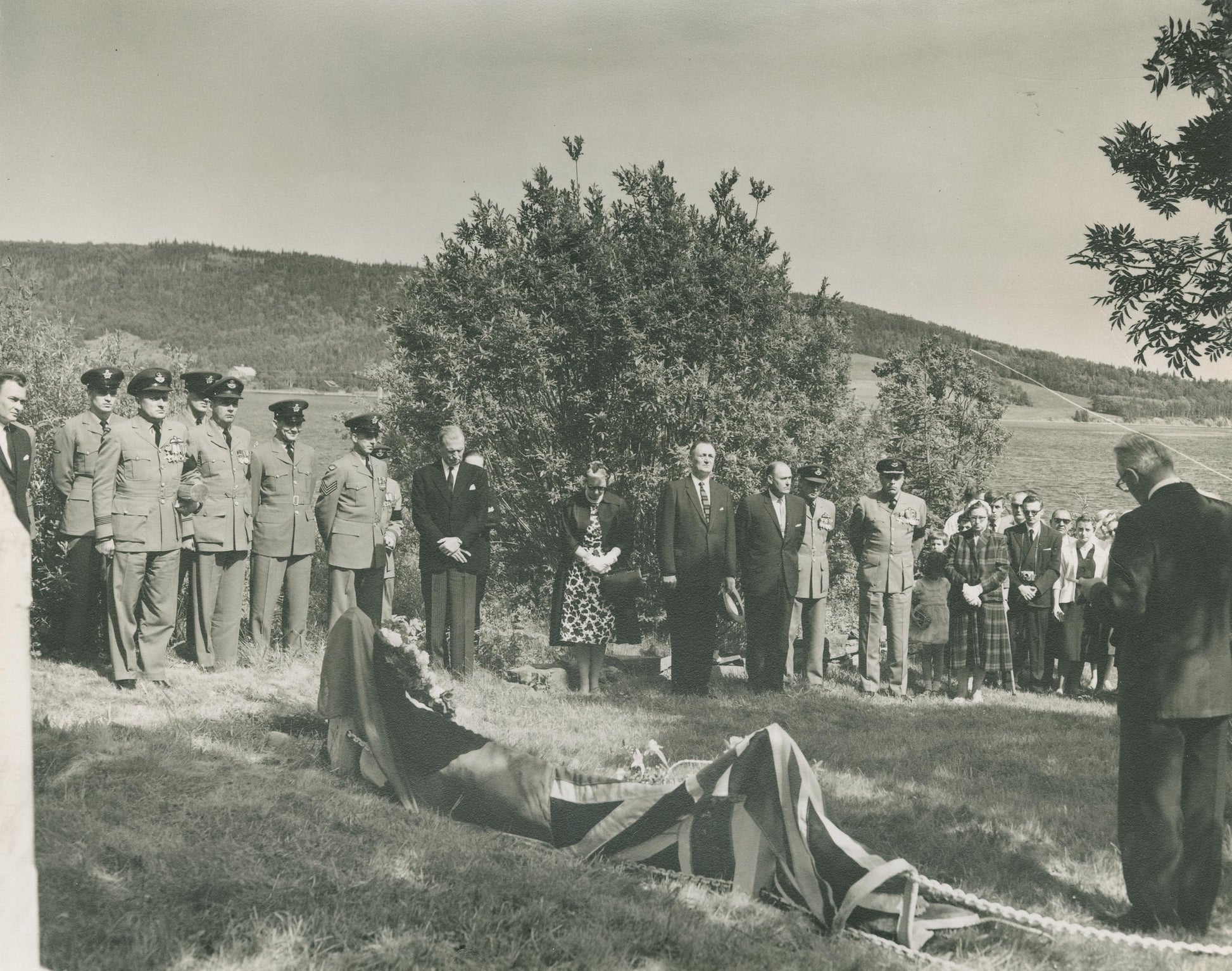 Military and gathered family and friends for the committal service for J.A.D. McCurdy, Baddeck, N.S.