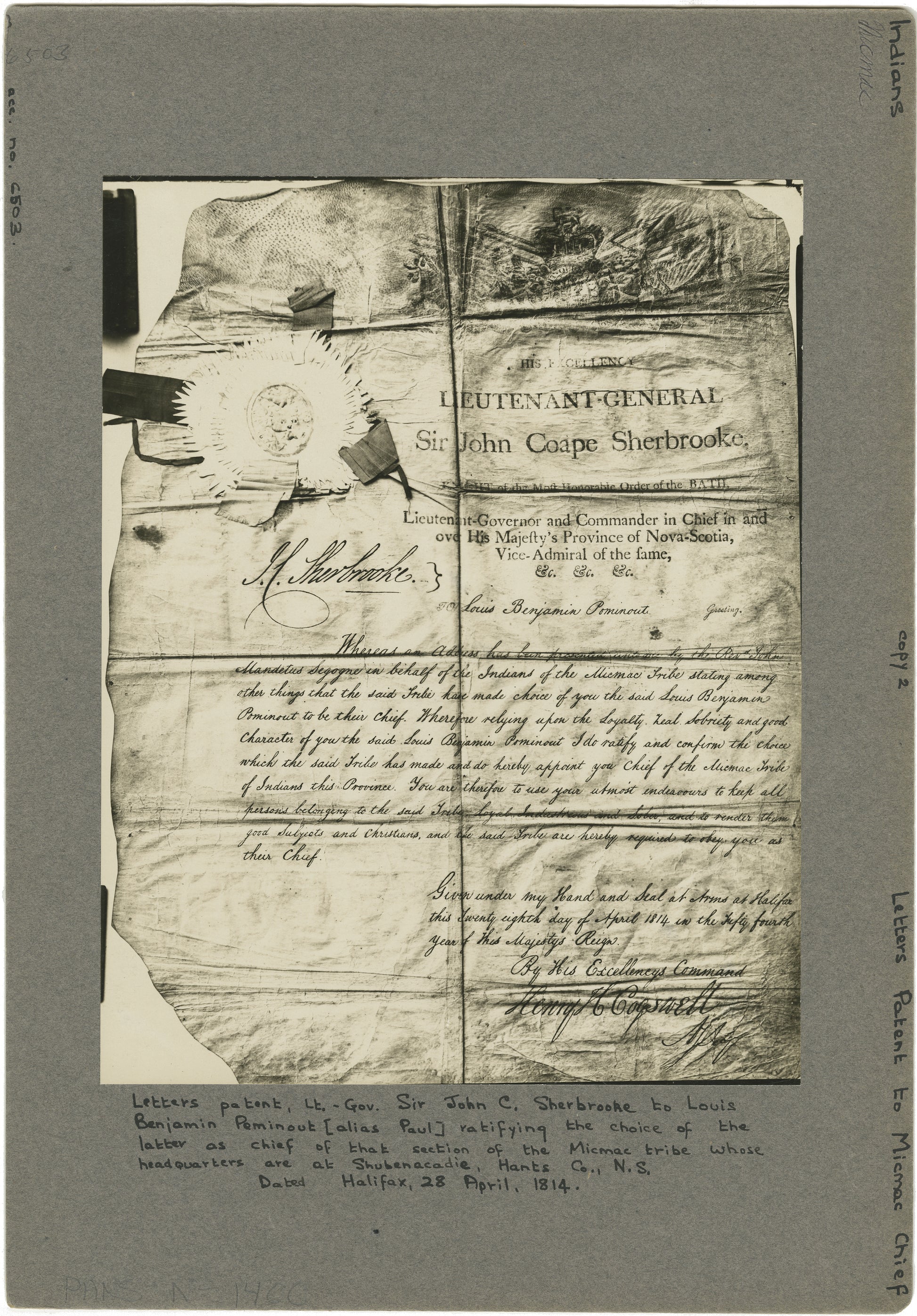 Reference: Nova Scotia Archives Photographic Collection: First Nations: Mi'kmaq: Letter Patent to Mi'kmaq Chief (Copy 2)