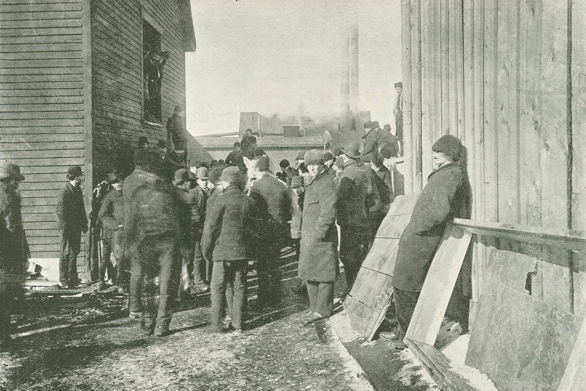 "Arrival at the morgue of bodies from the pits"; published in The Dominion Illustrated, 7 March 1891, p. 229.